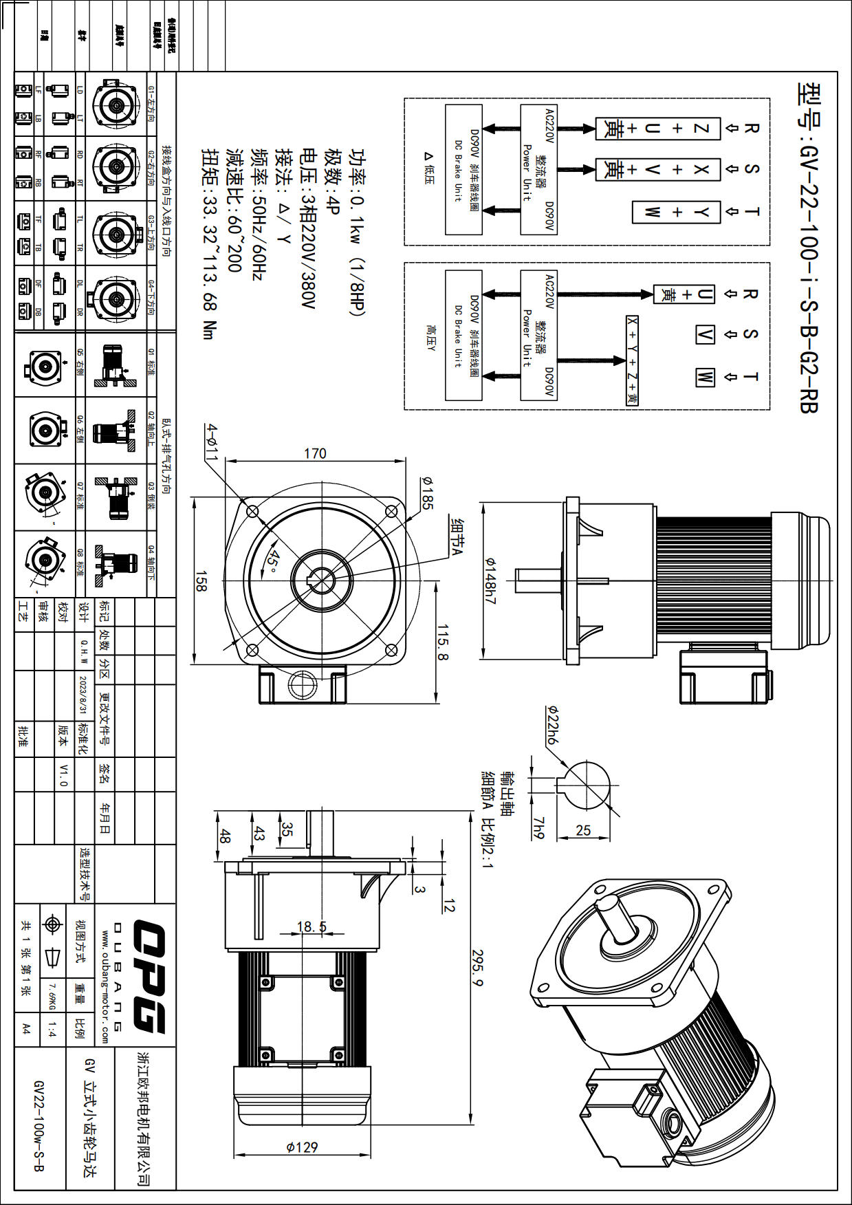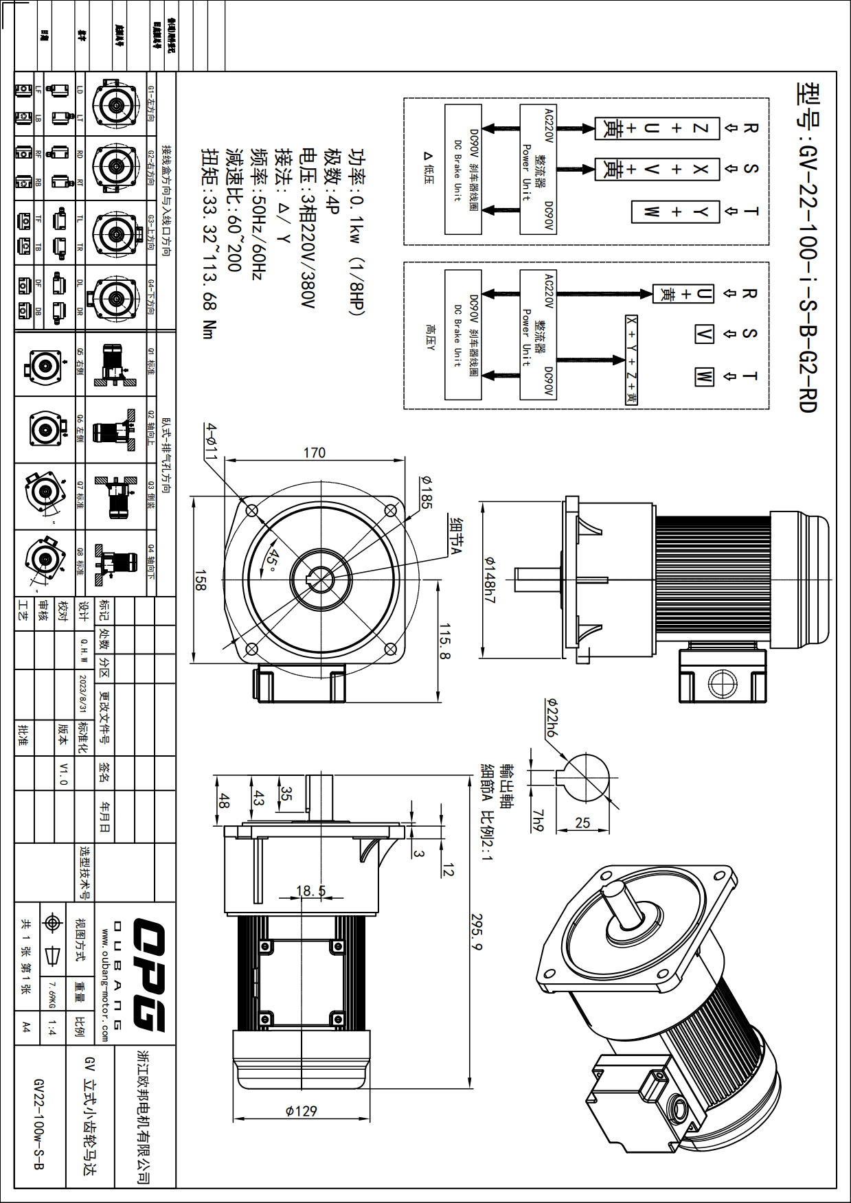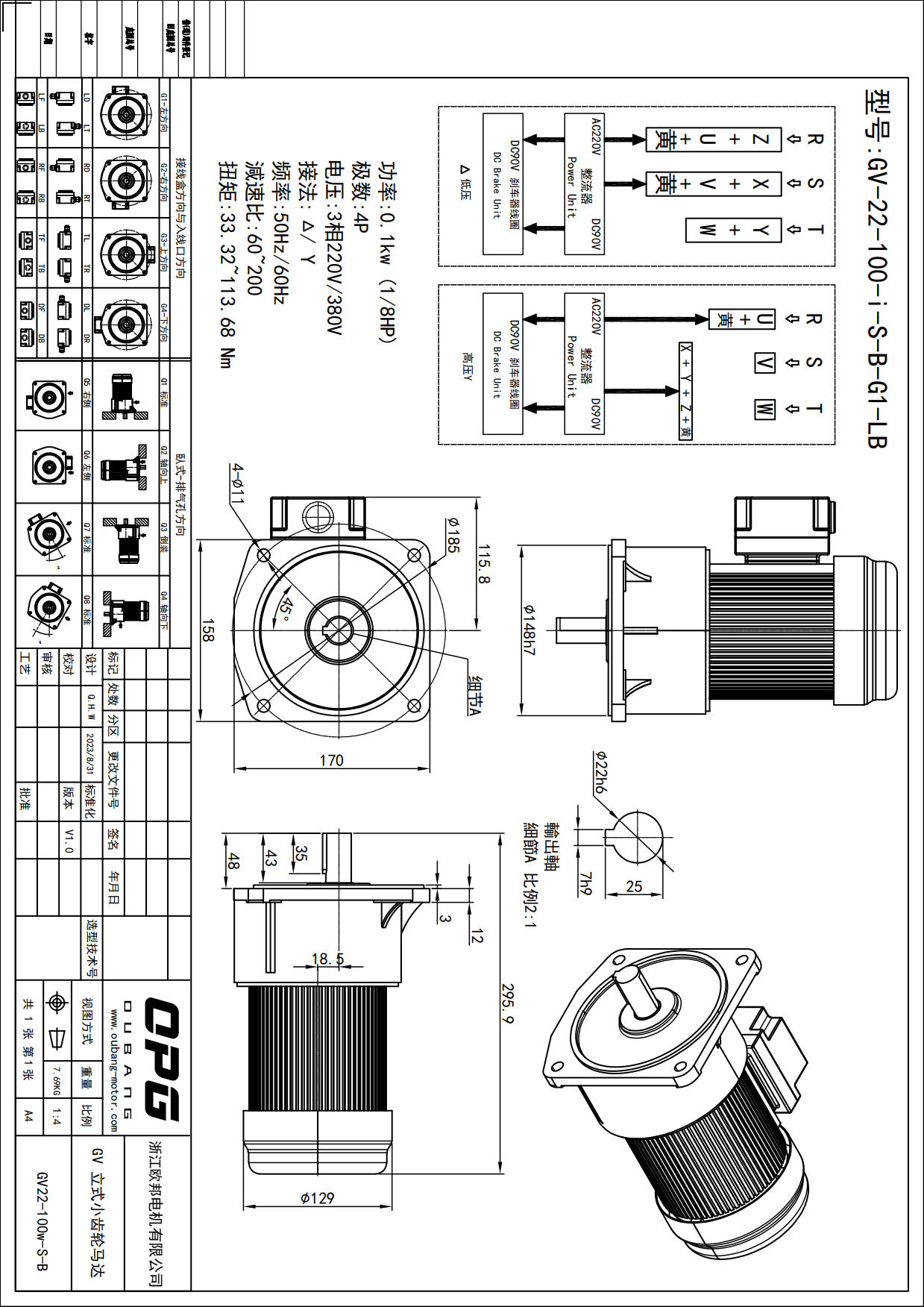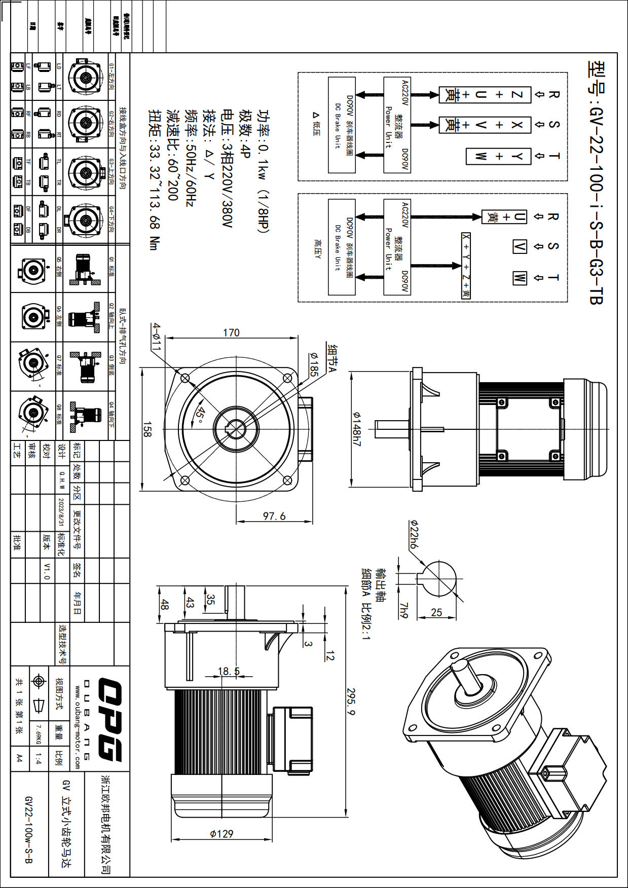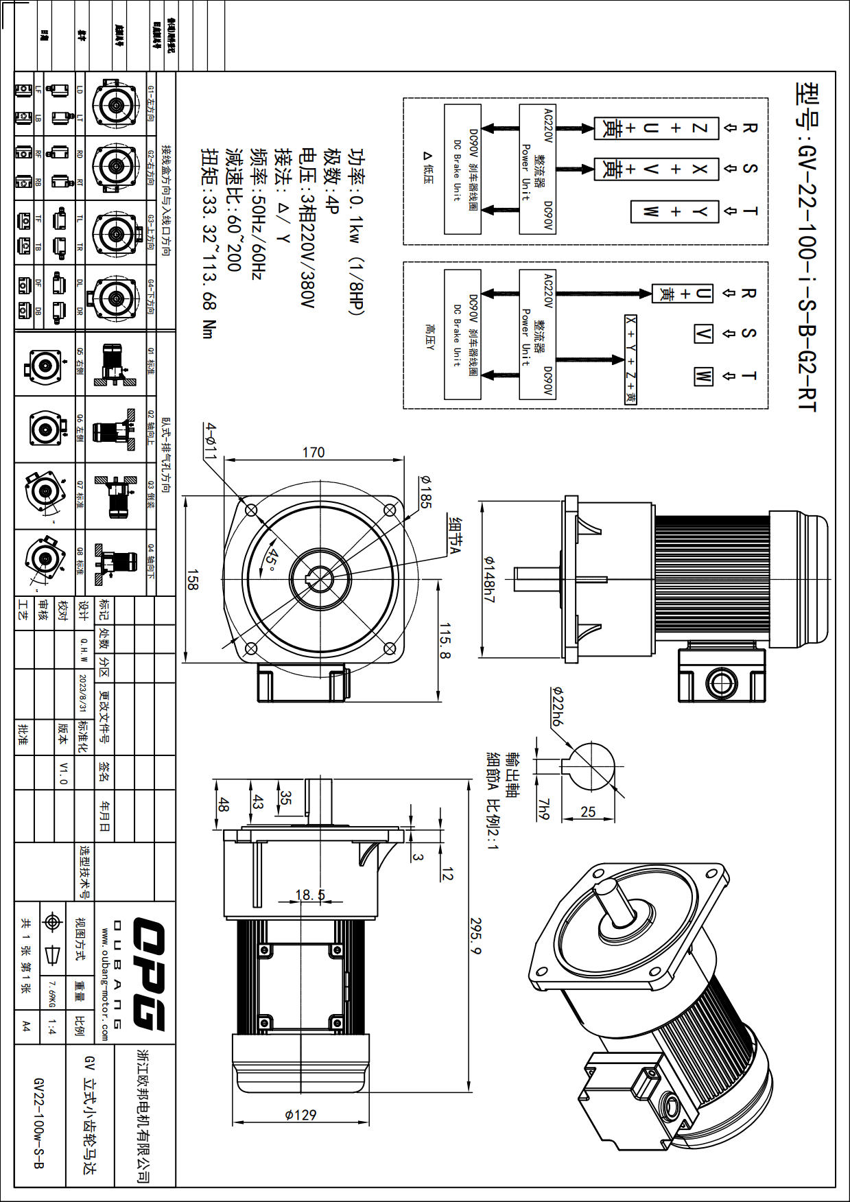 GV100W立式减速马达