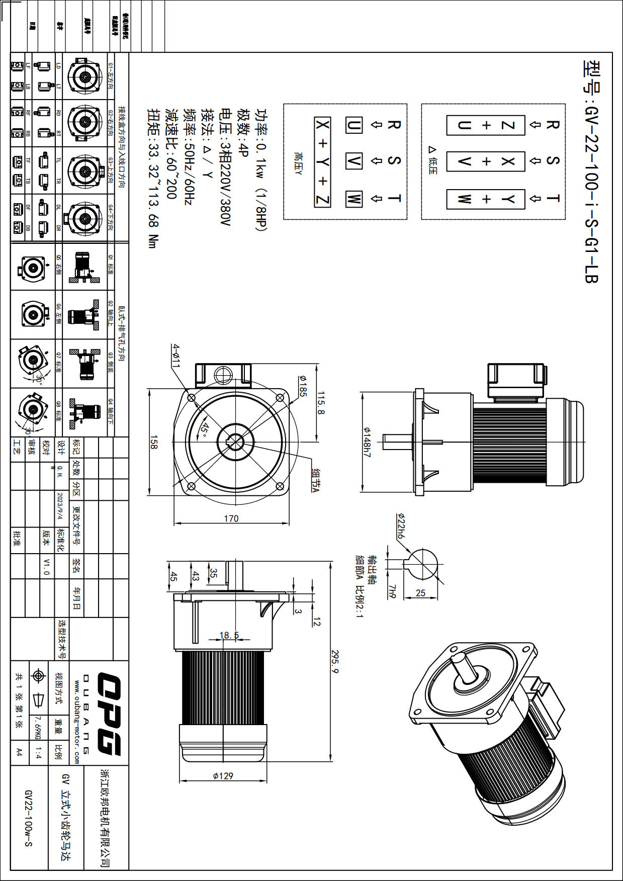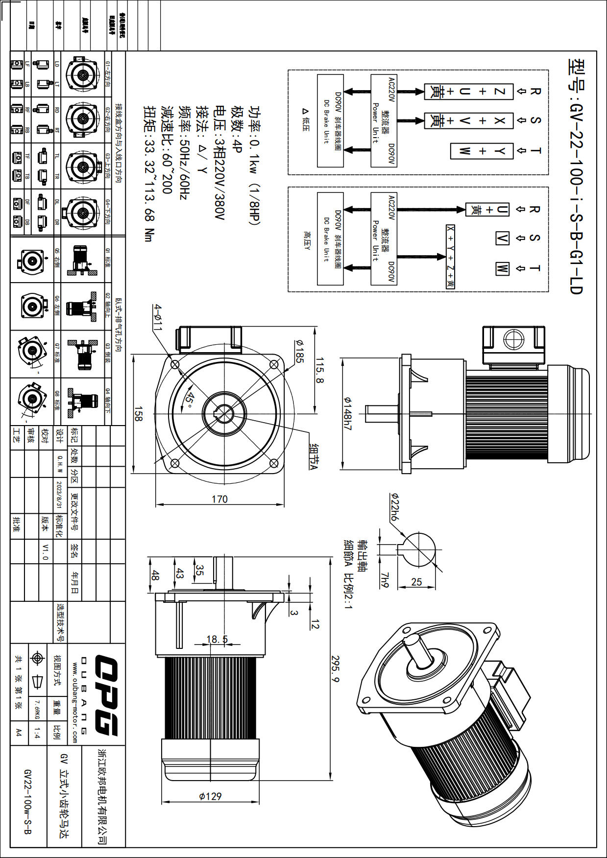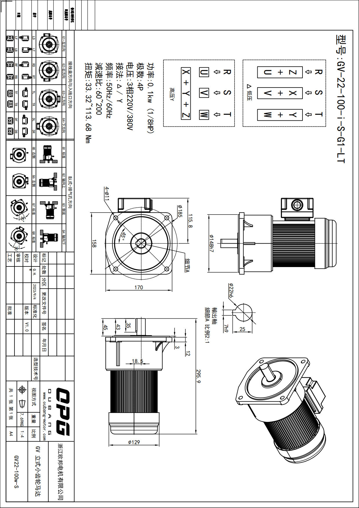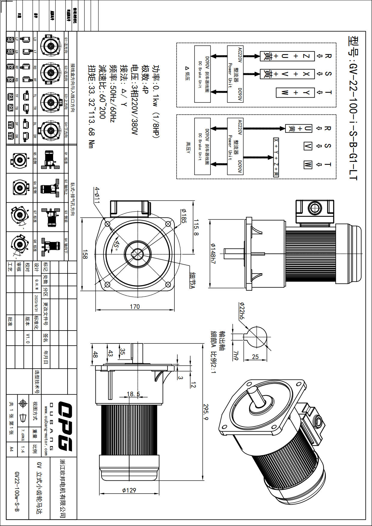 GV100W立式减速马达