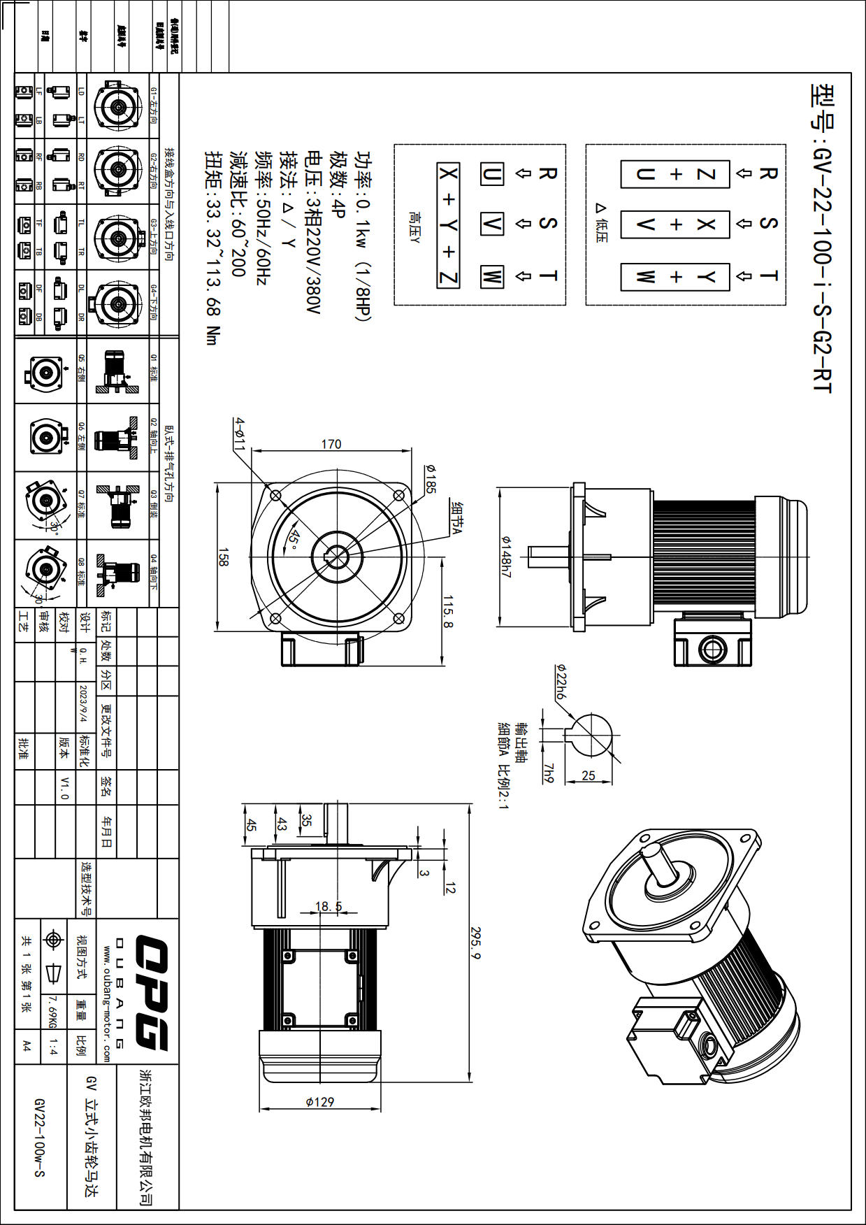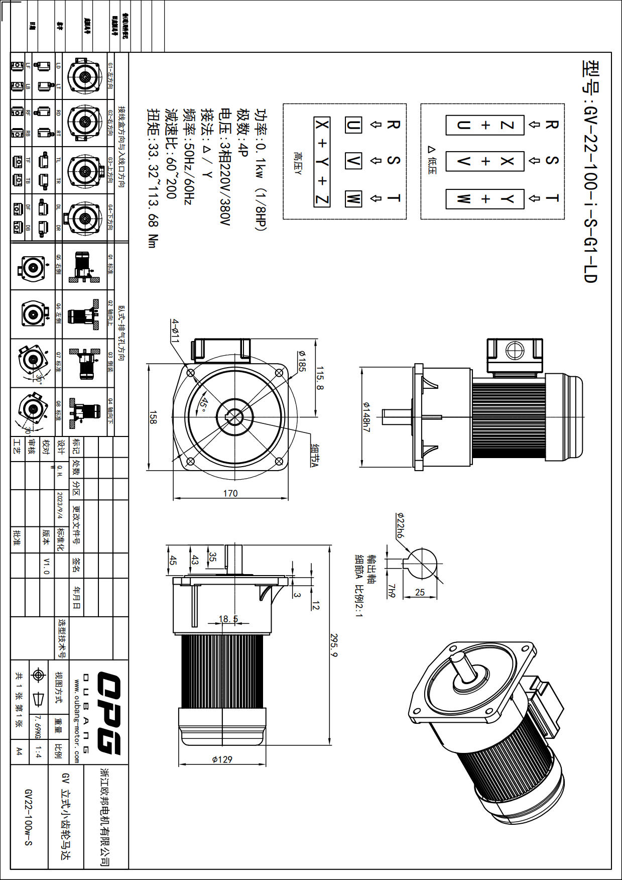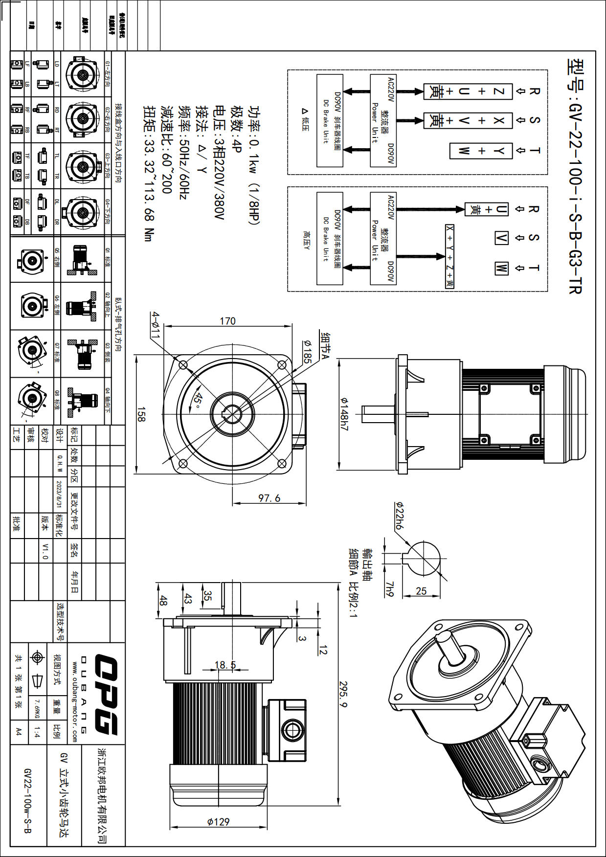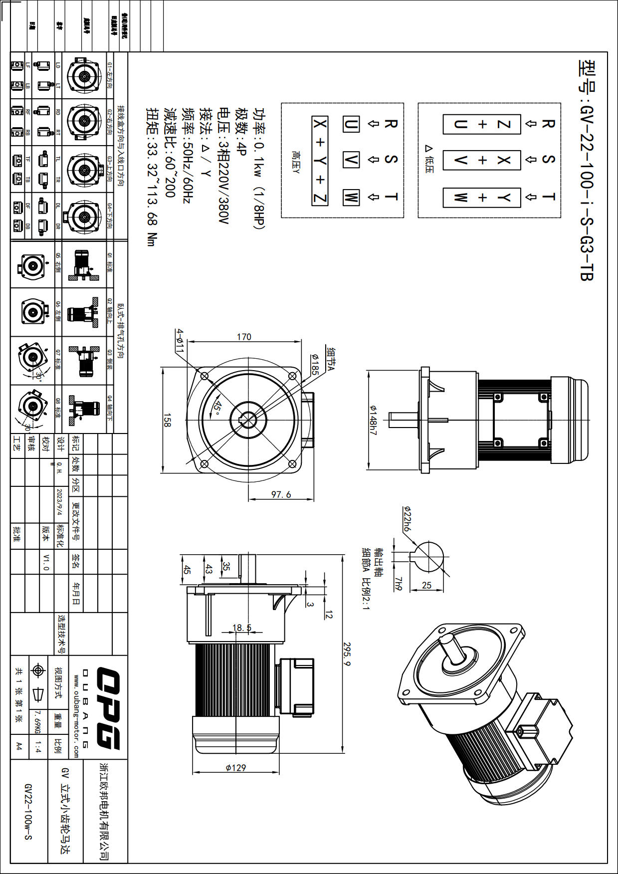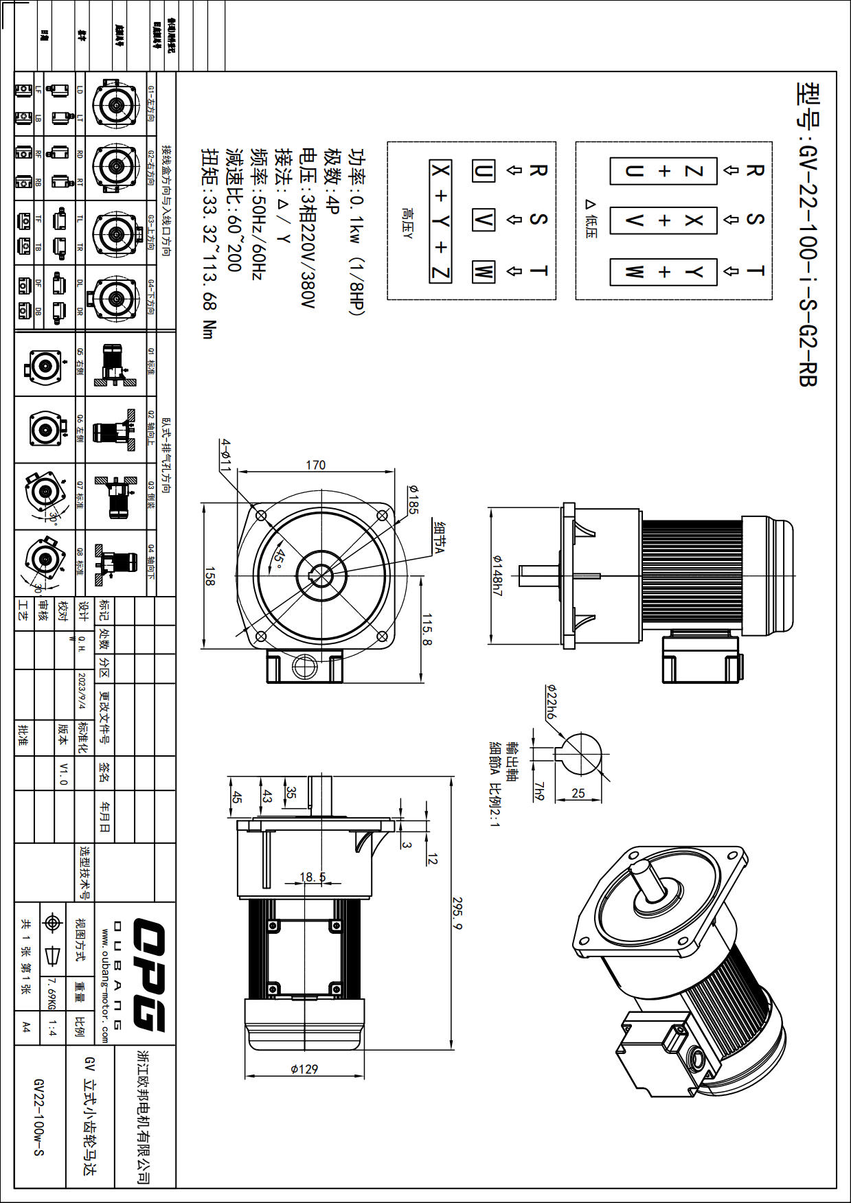 GV100W立式减速马达