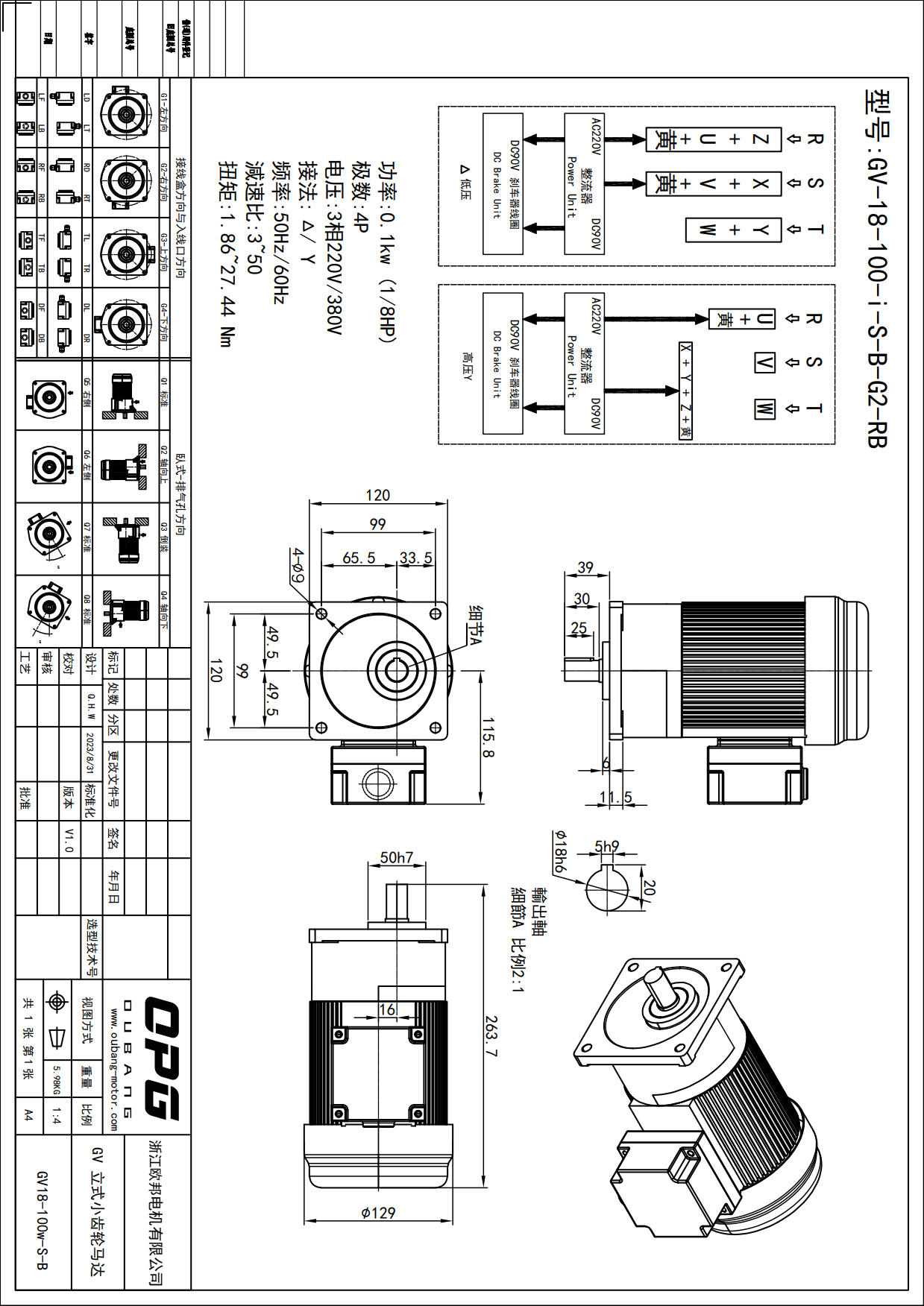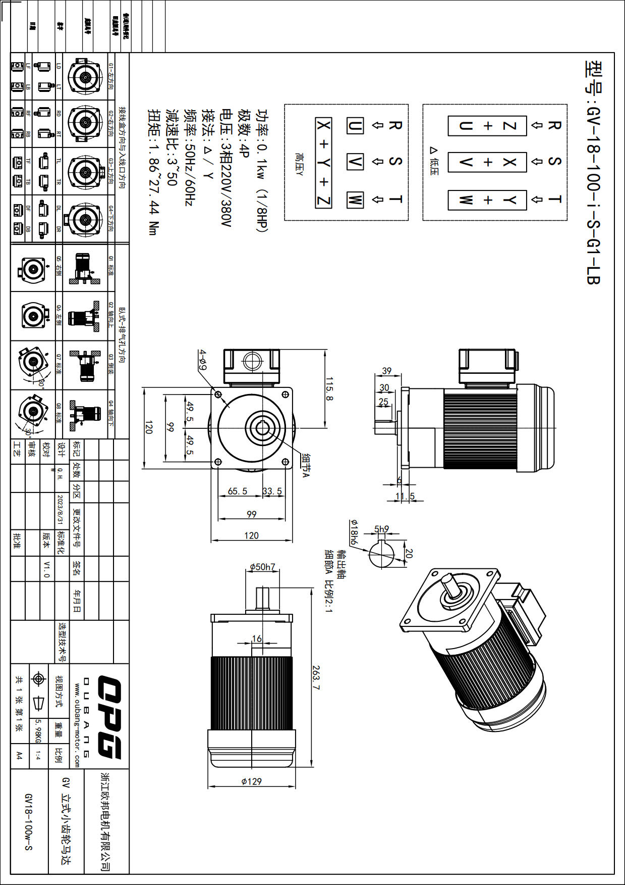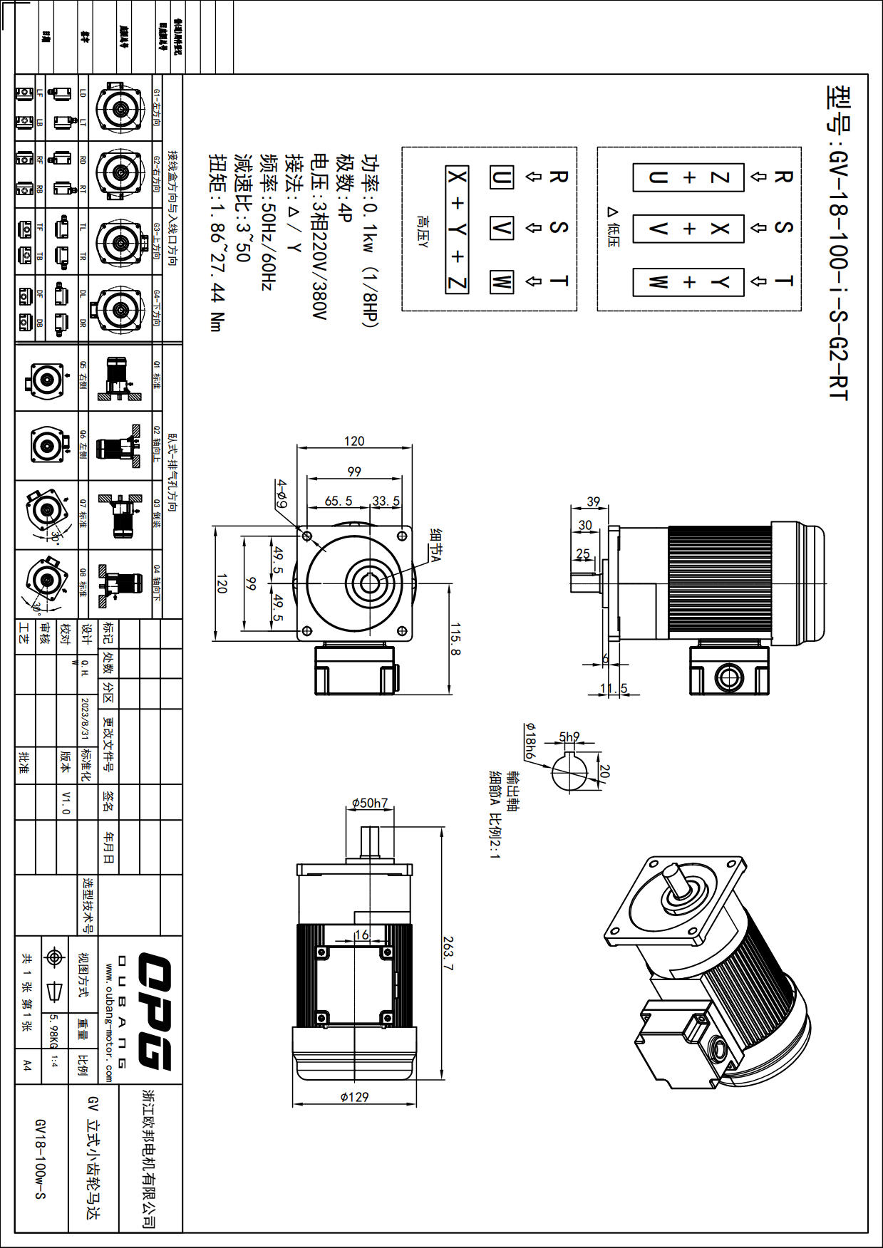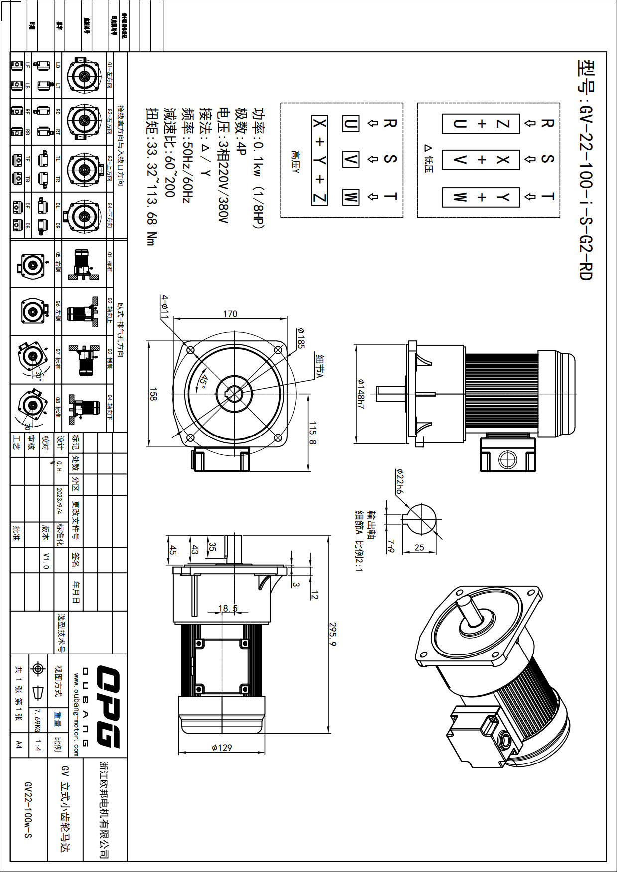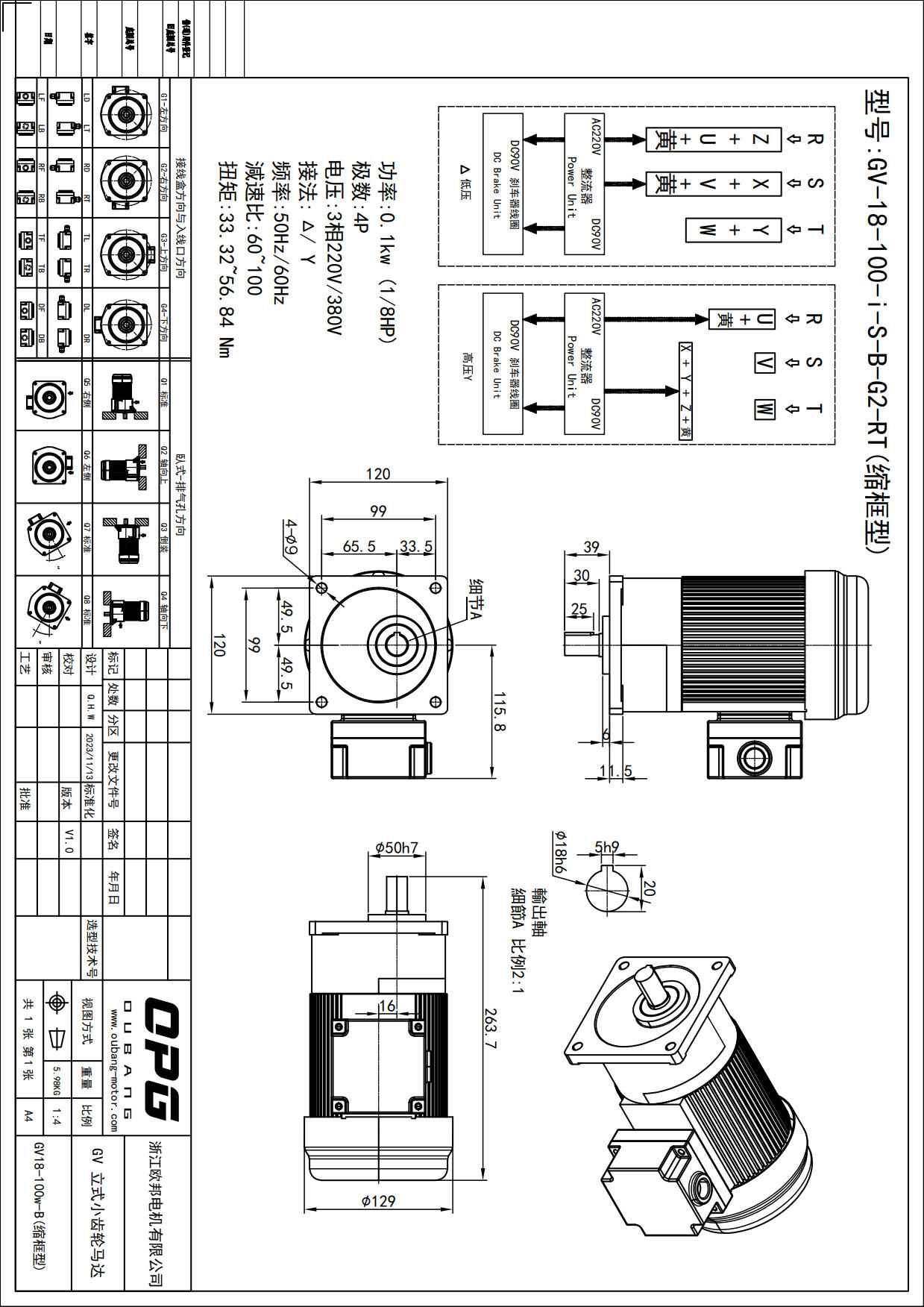 GV100W立式减速马达
