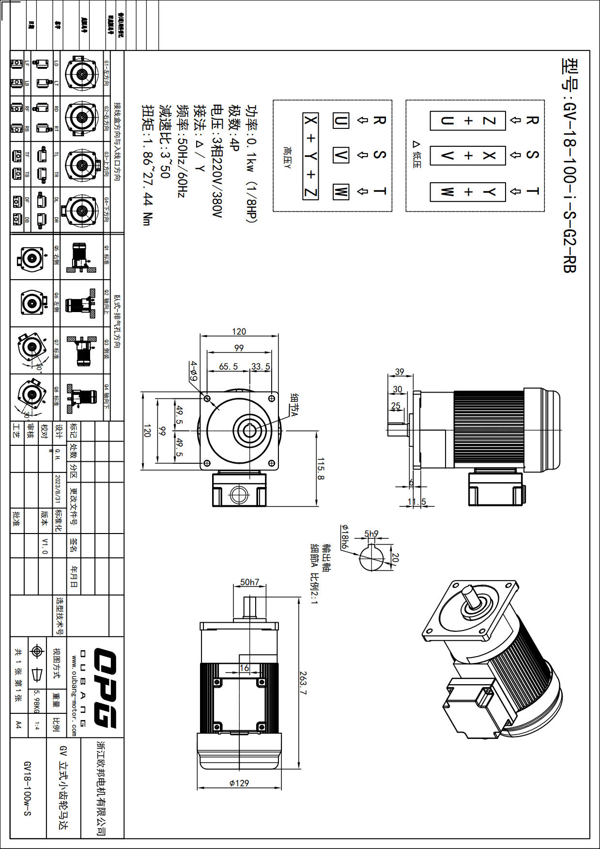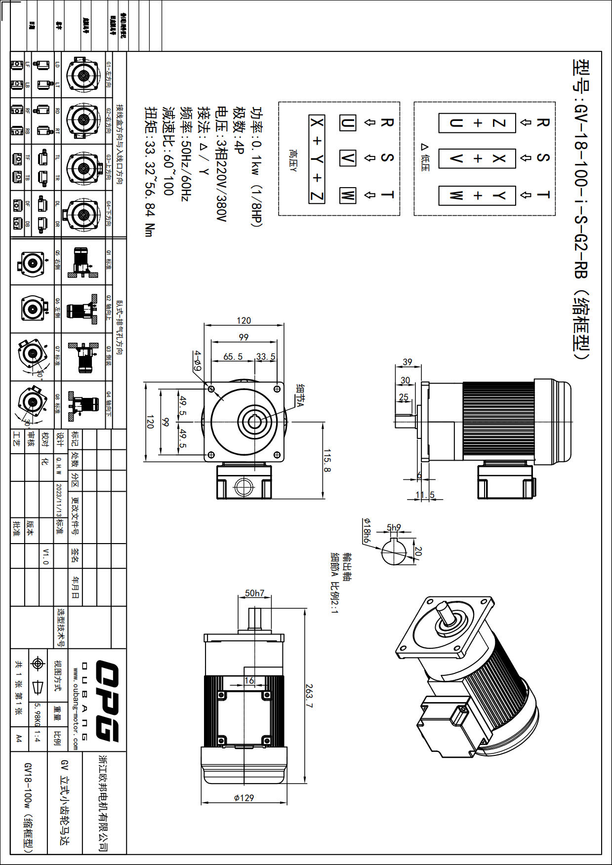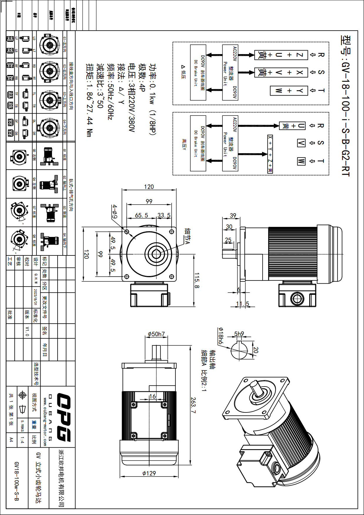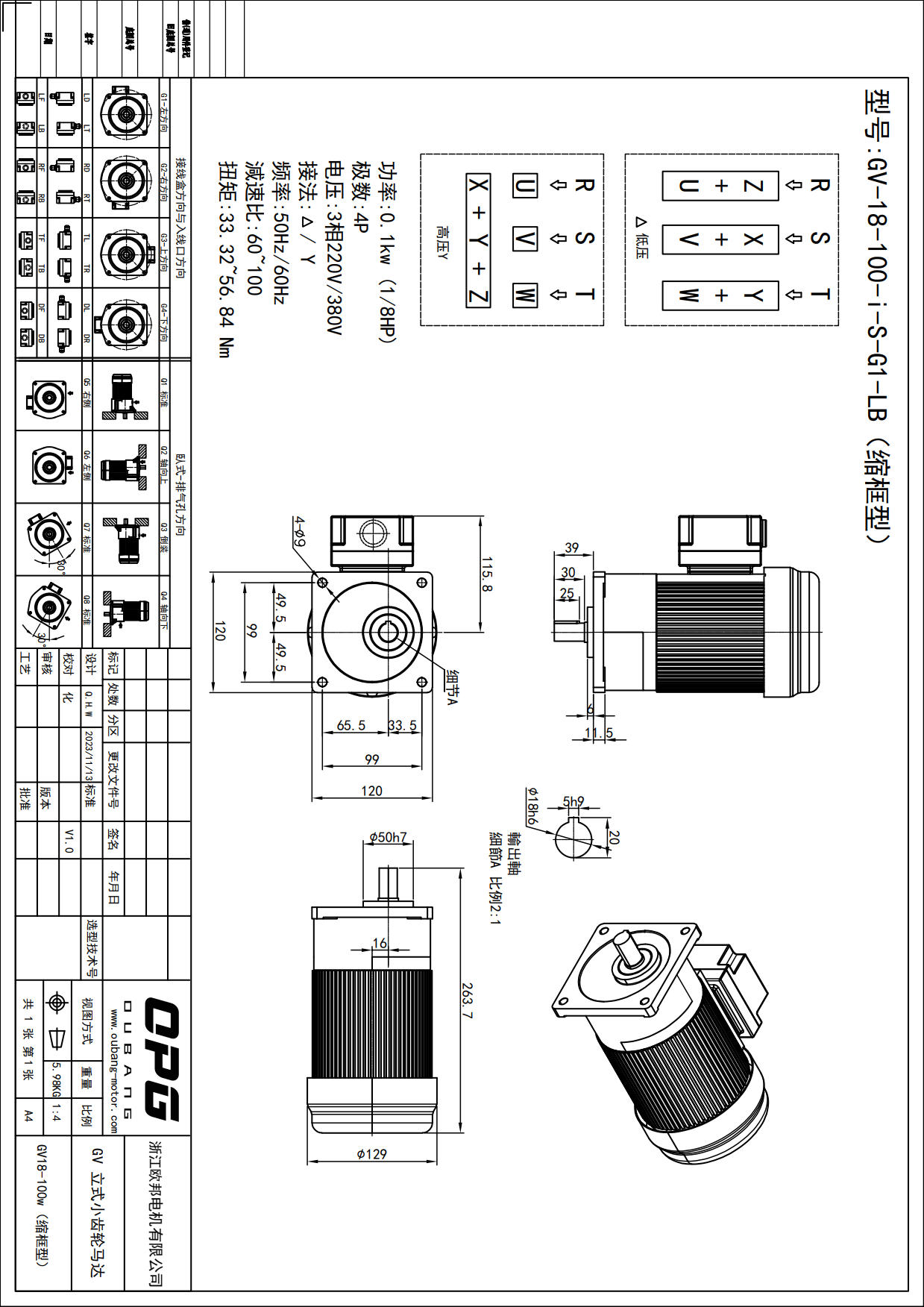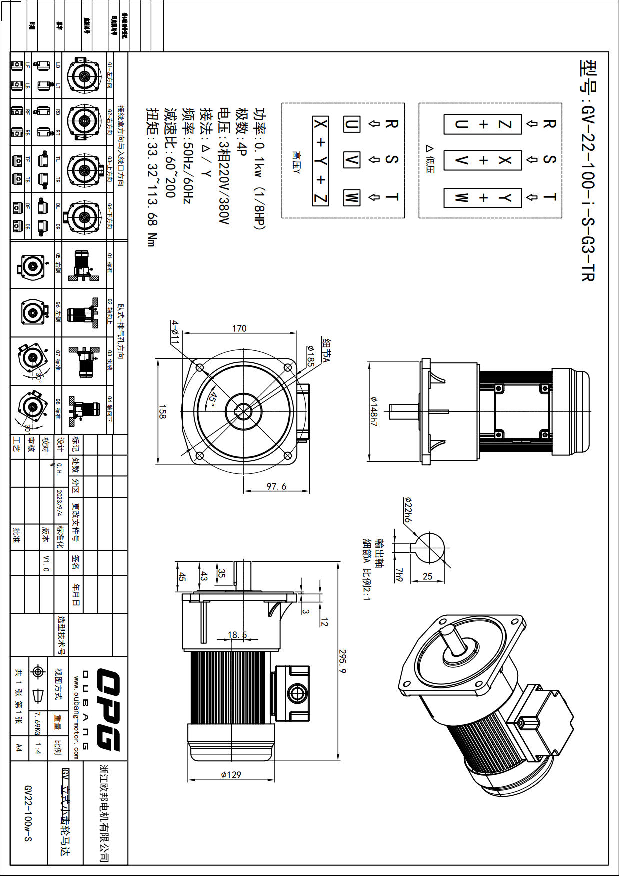 GV100W立式减速马达