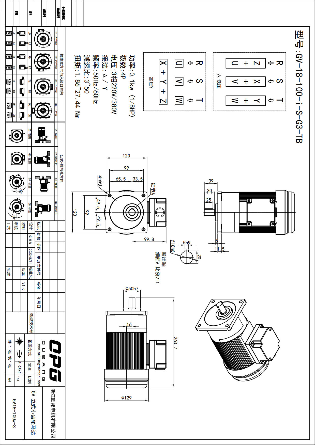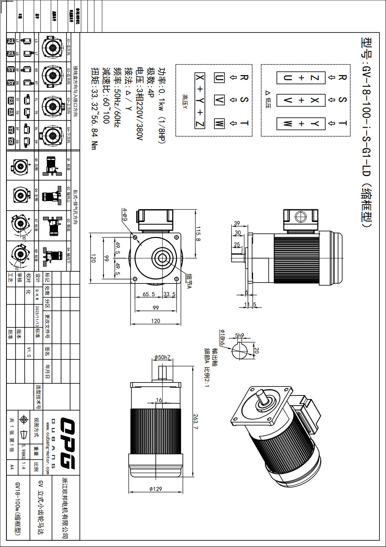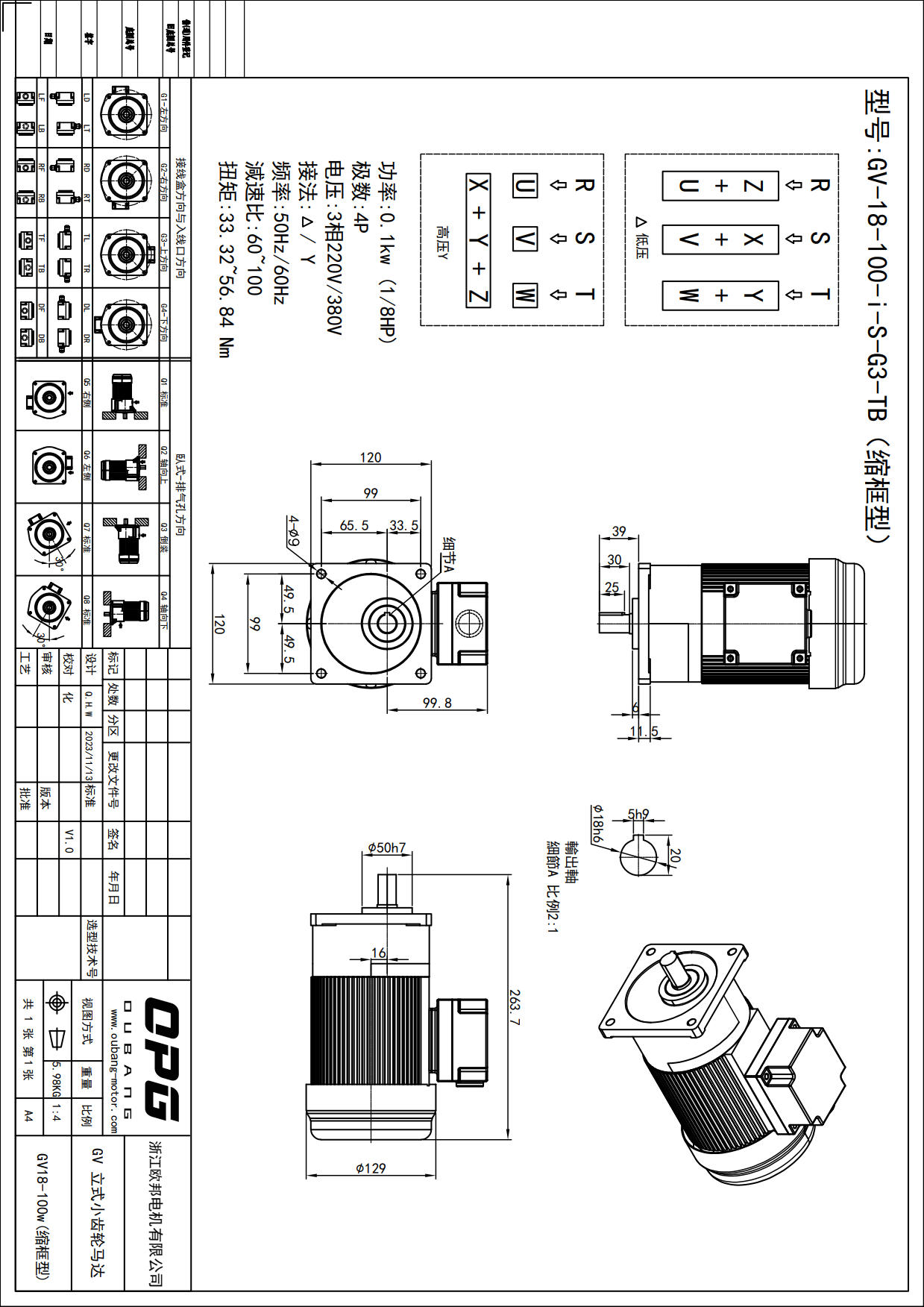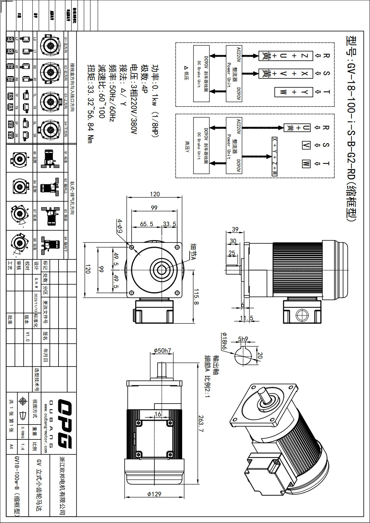 GV100W立式减速马达
