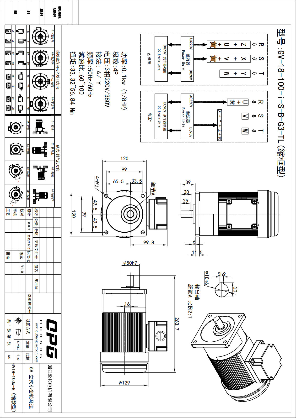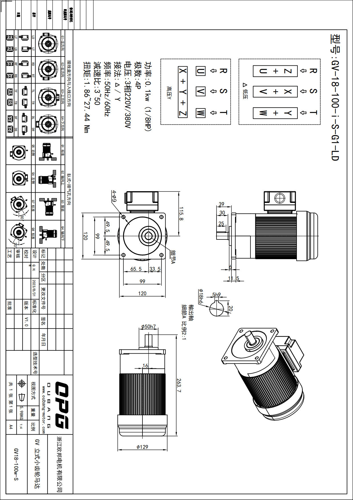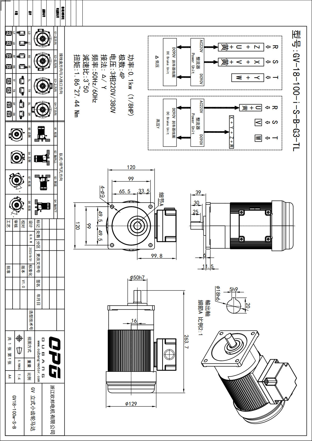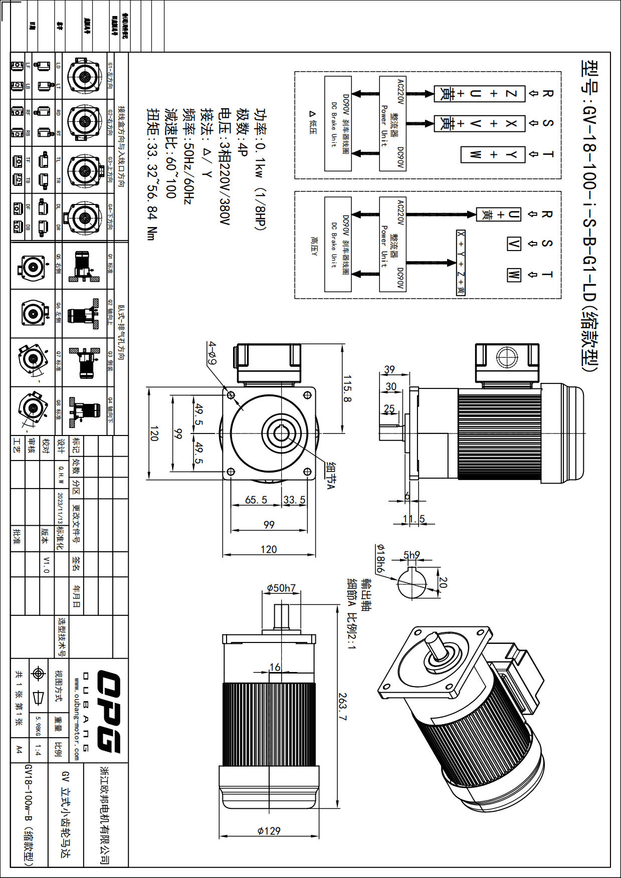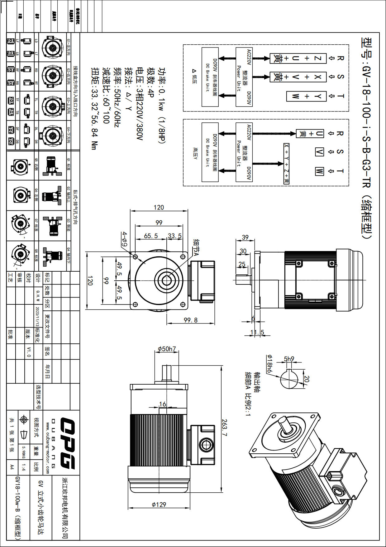 GV100W立式减速马达