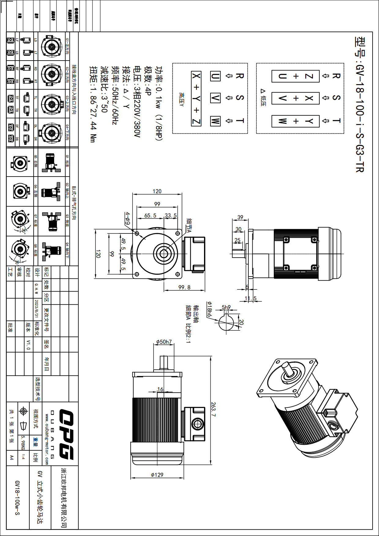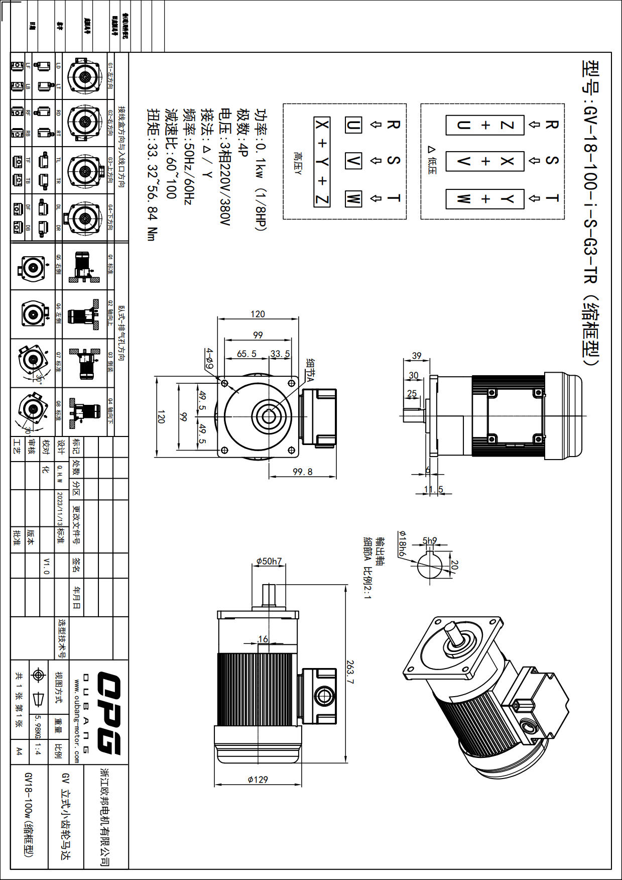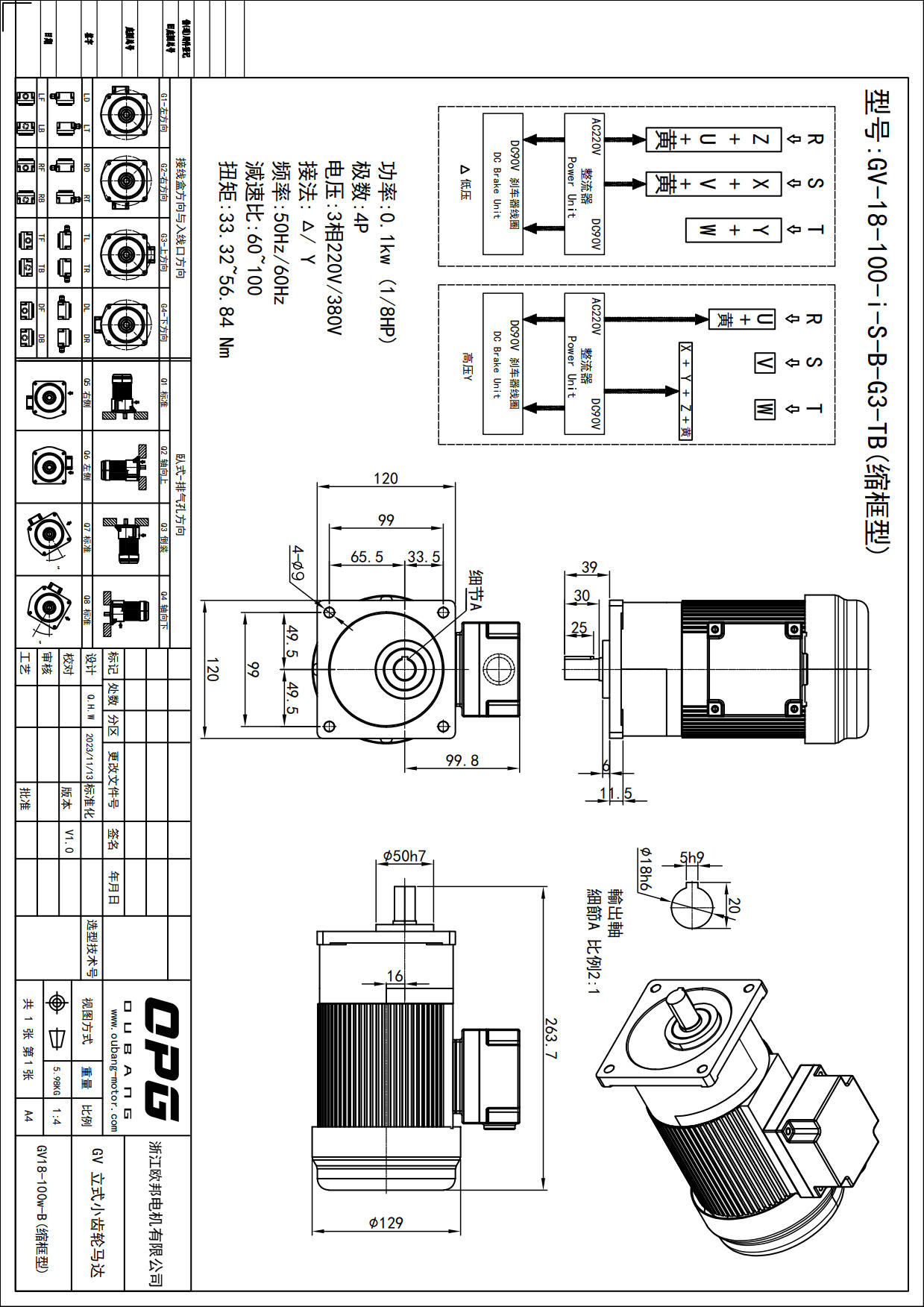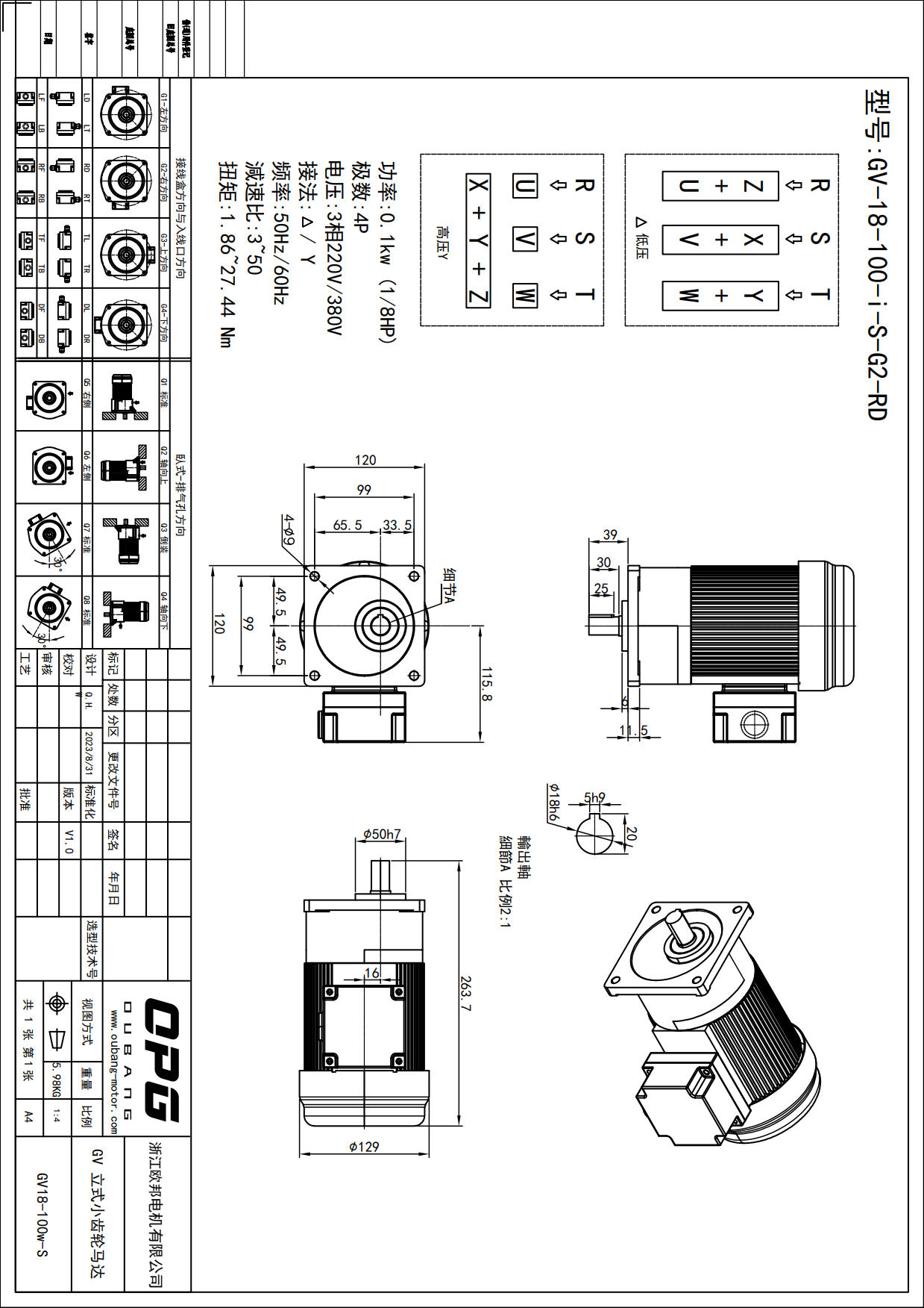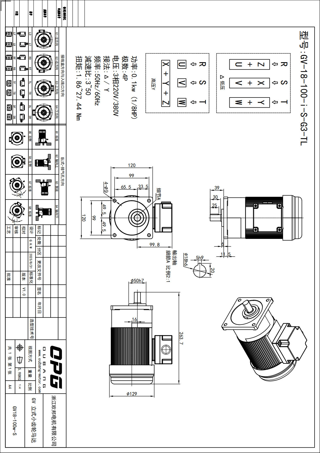 GV100W立式减速马达