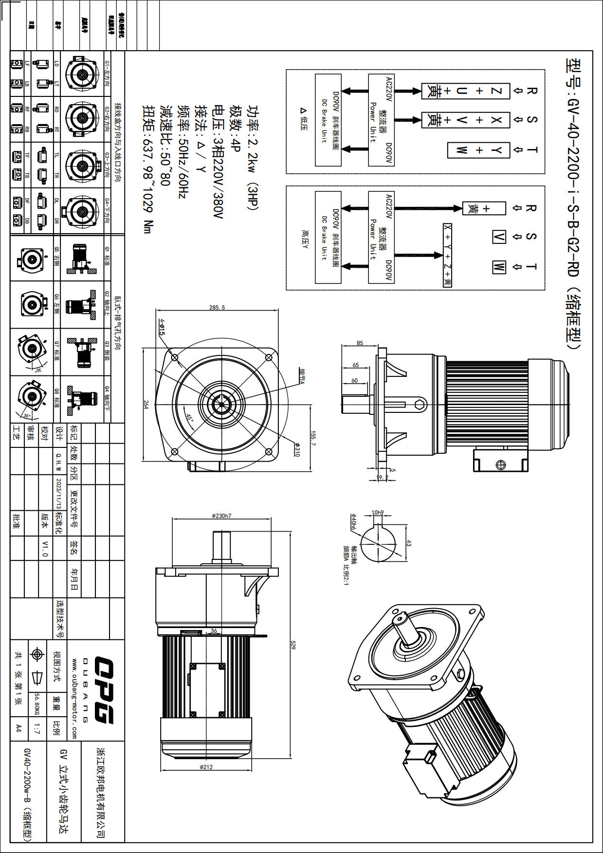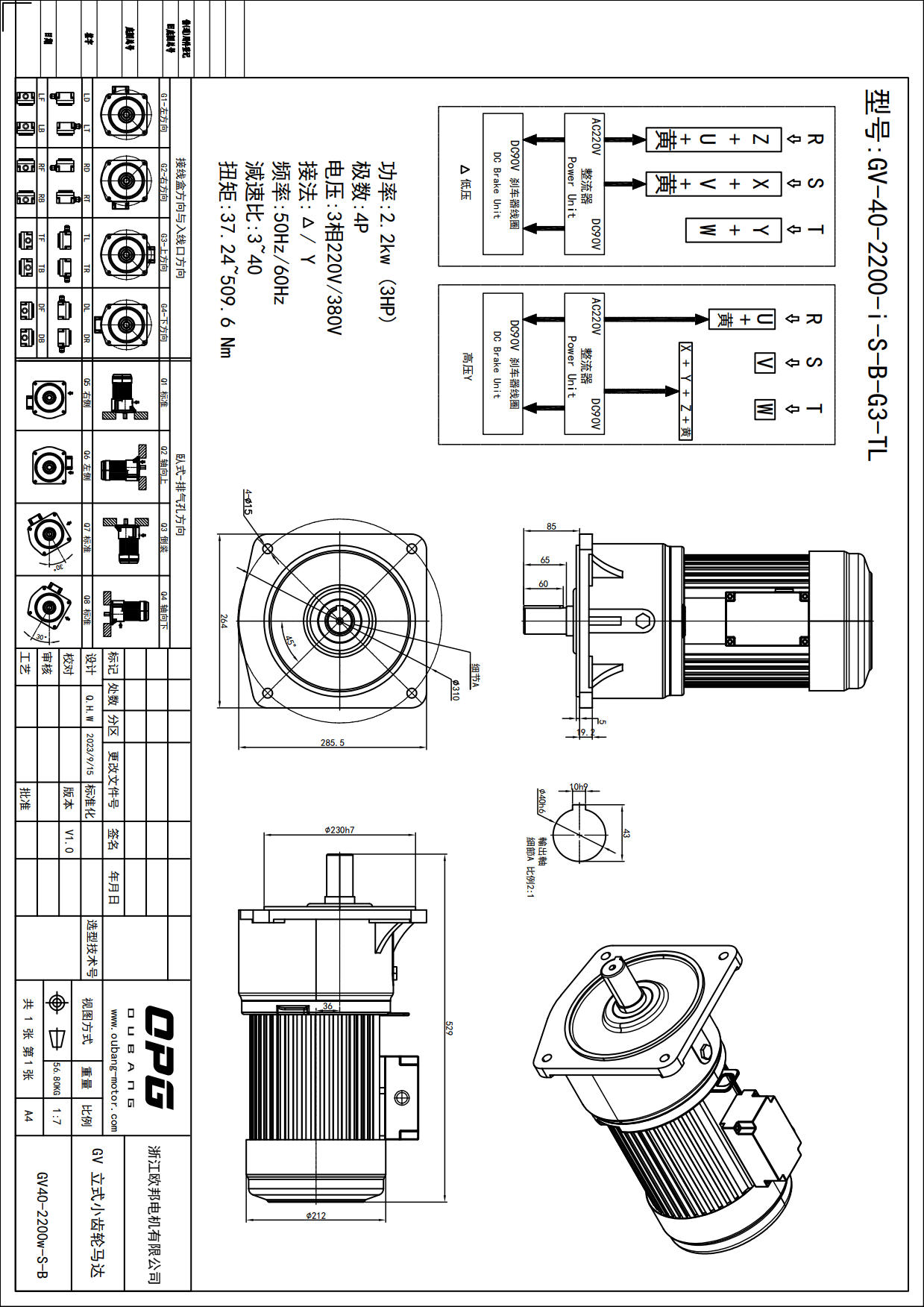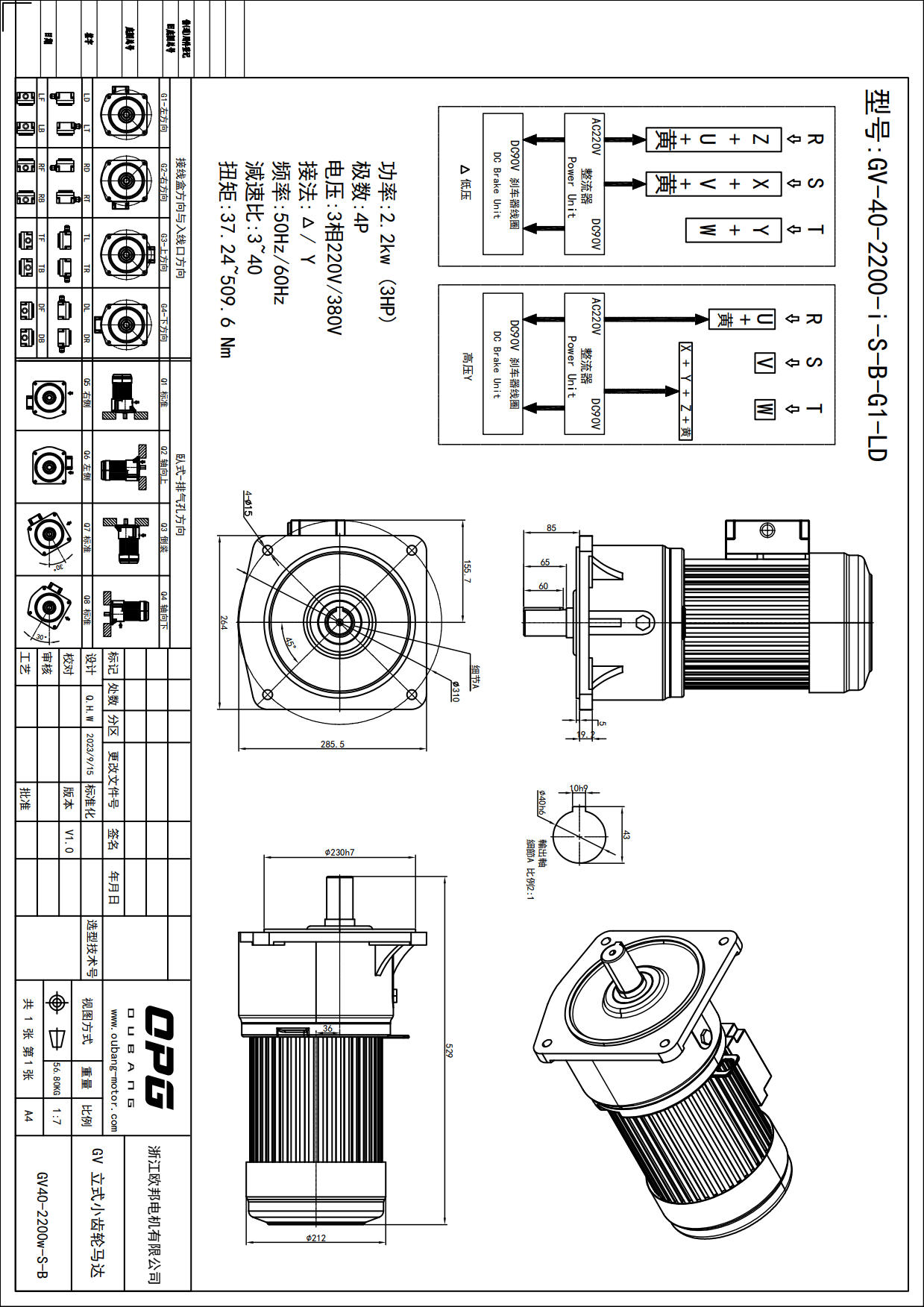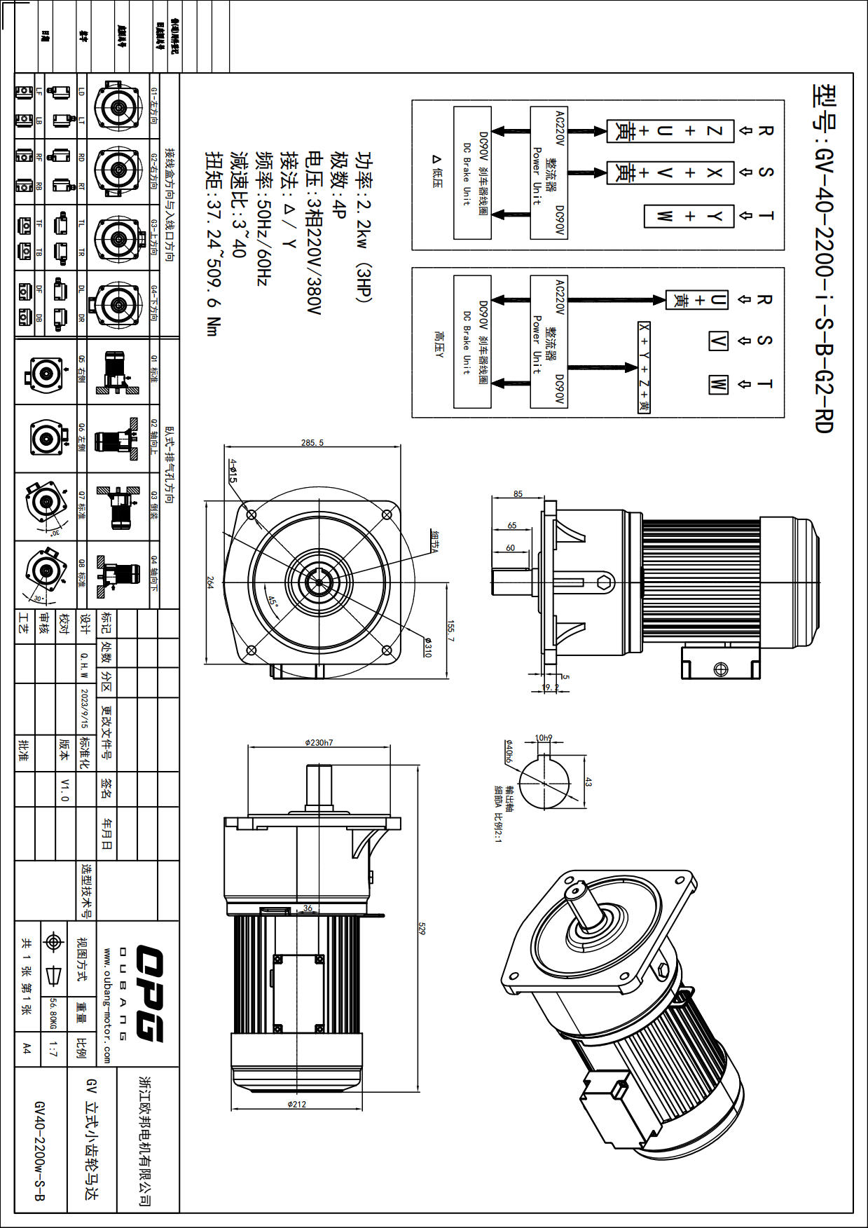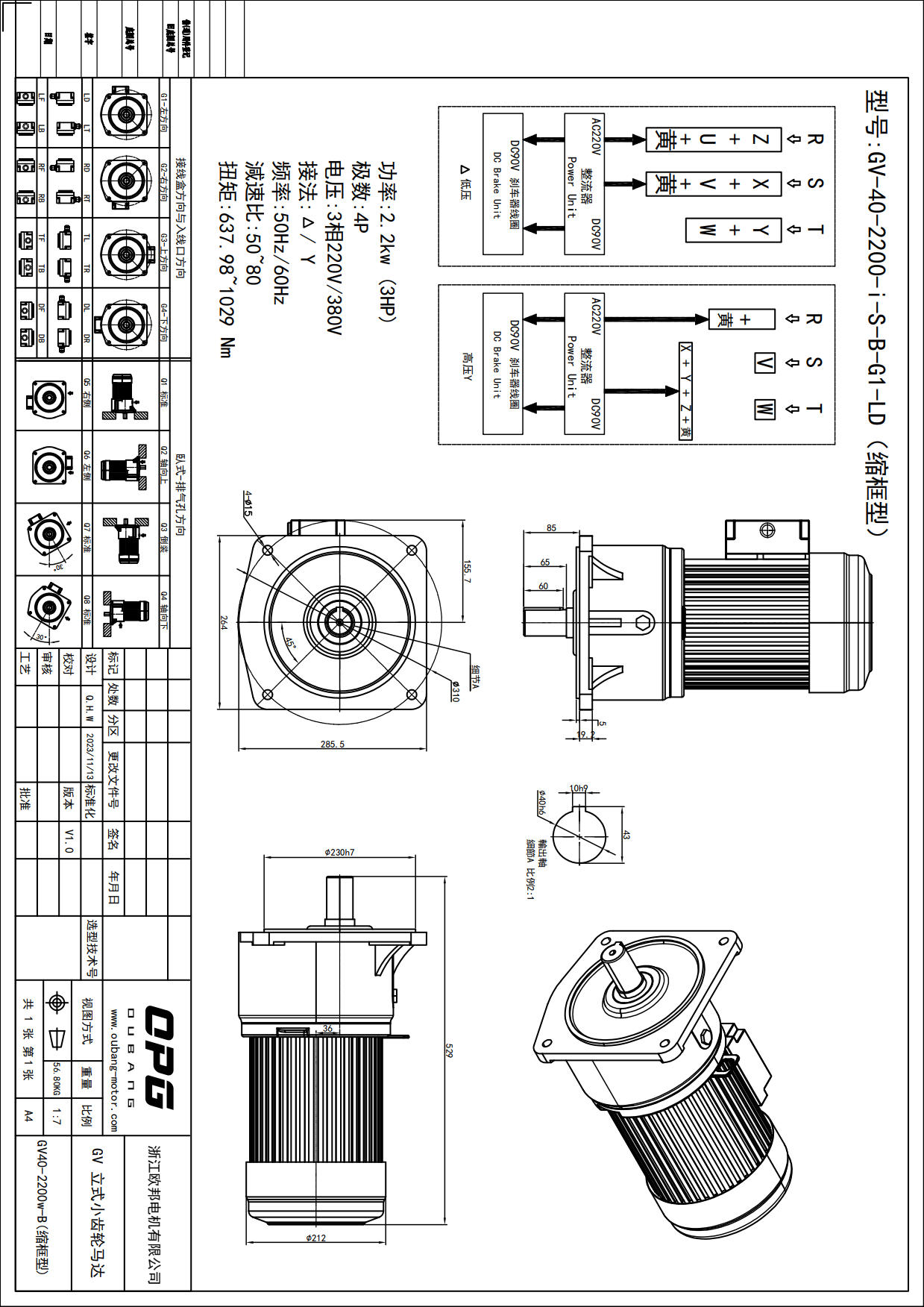 GV2200W立式减速电机