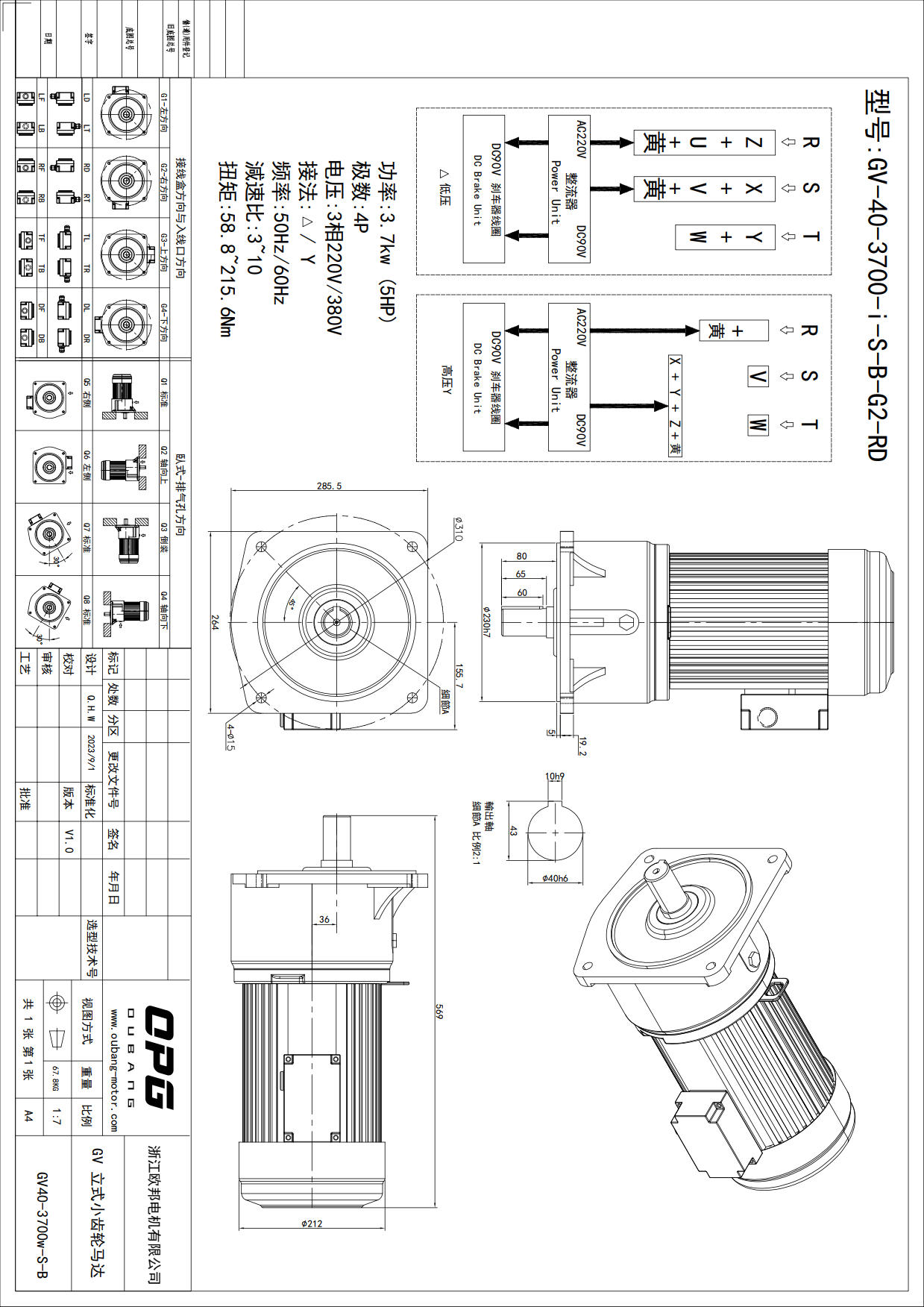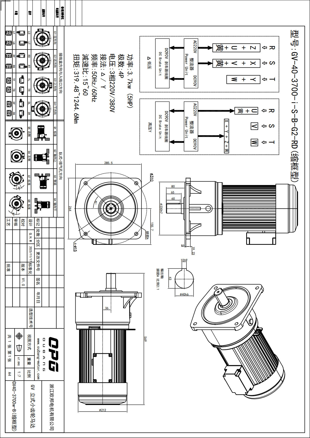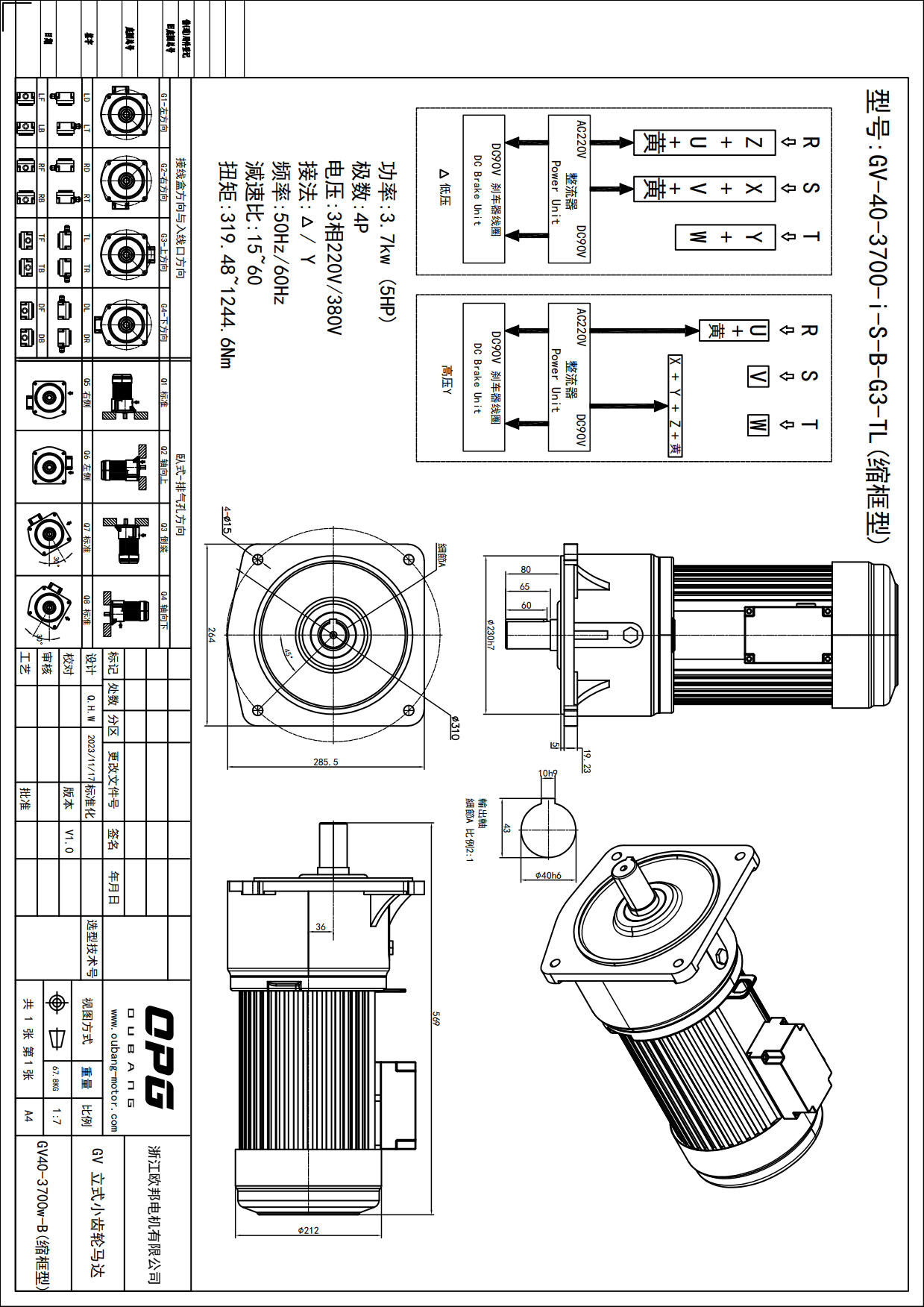 GV3700W立式减速电机