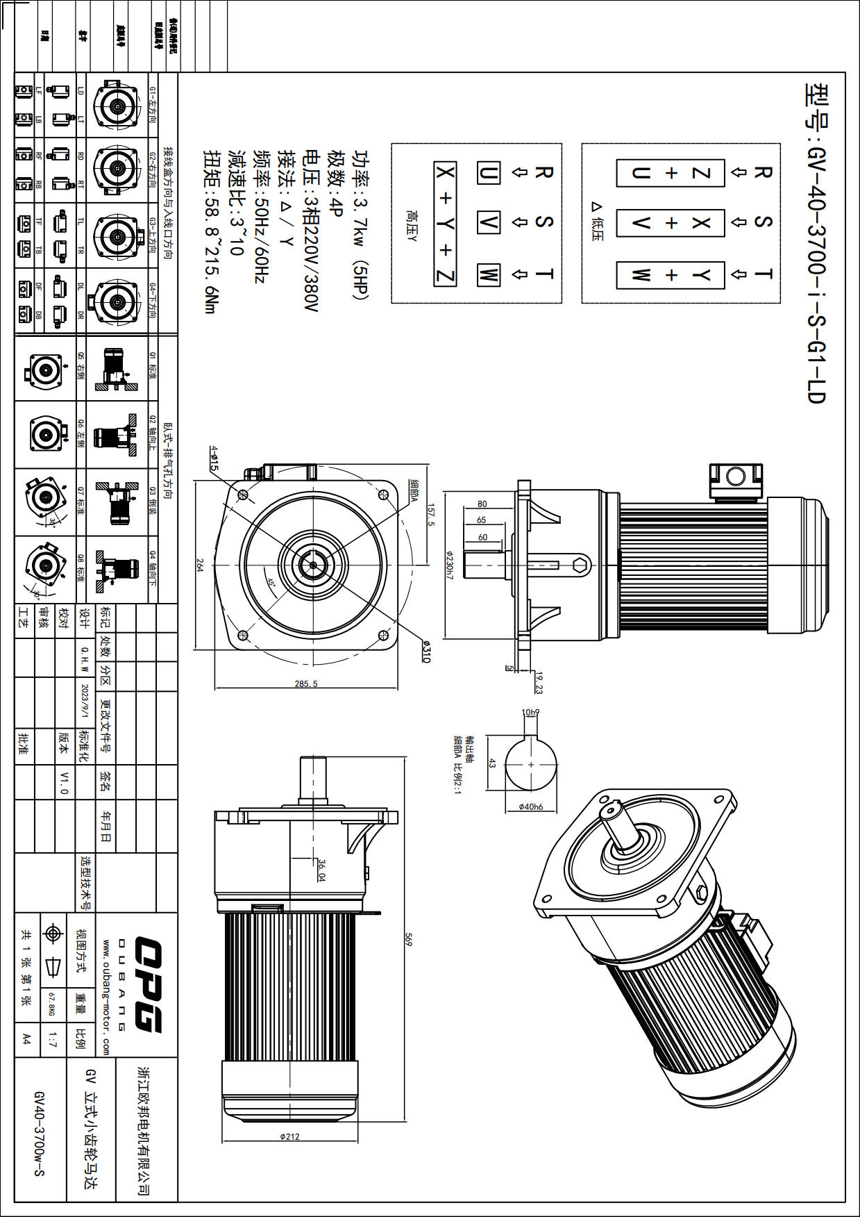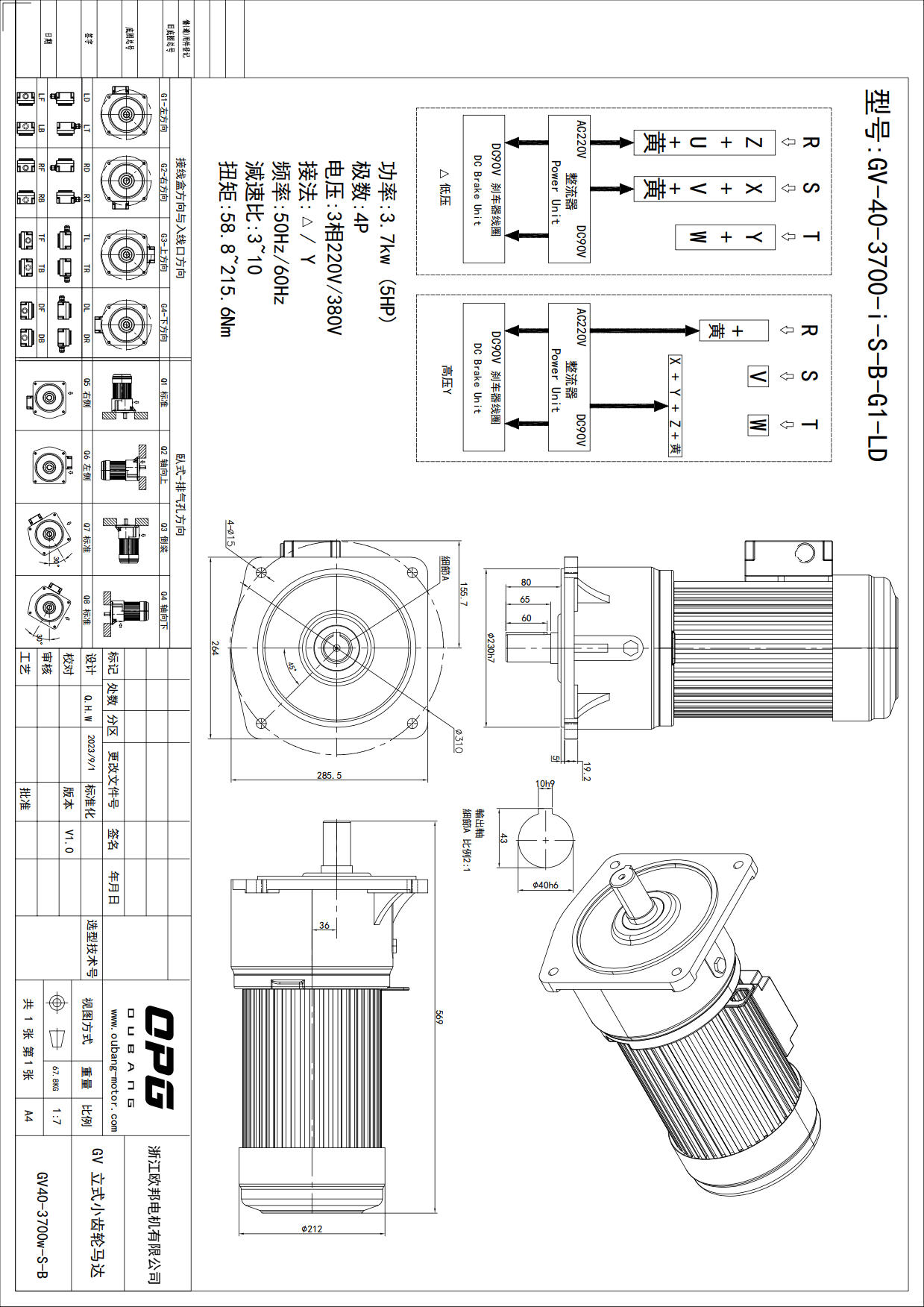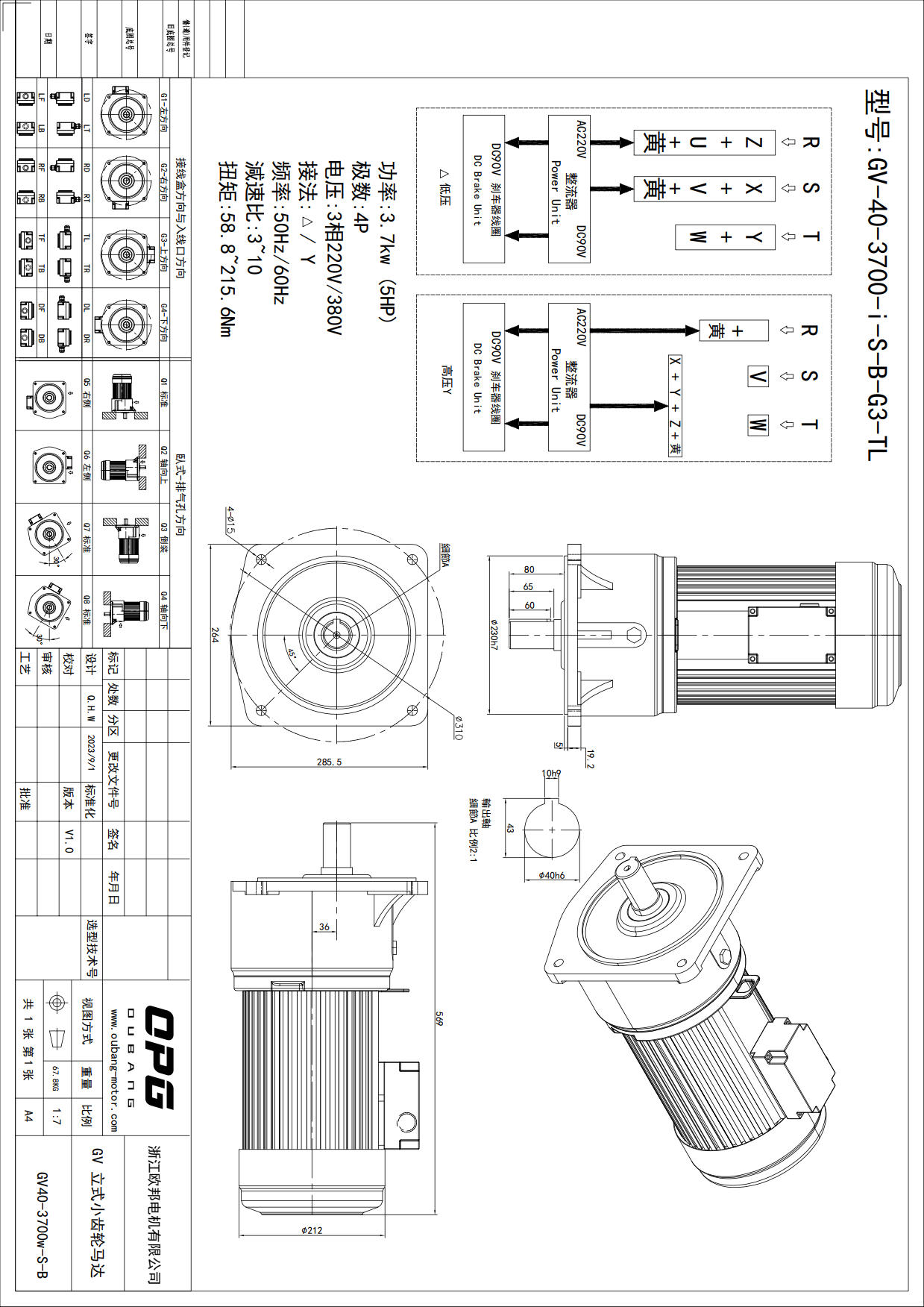 GV3700W立式减速电机